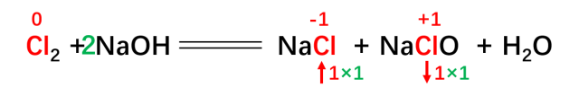 当遇到歧化反应时,正向配平似乎并不容易。于是我们采取逆向思维,原理和正向配平完全一致。此处我们使用氯气和氢氧化钠的反应作为例子: